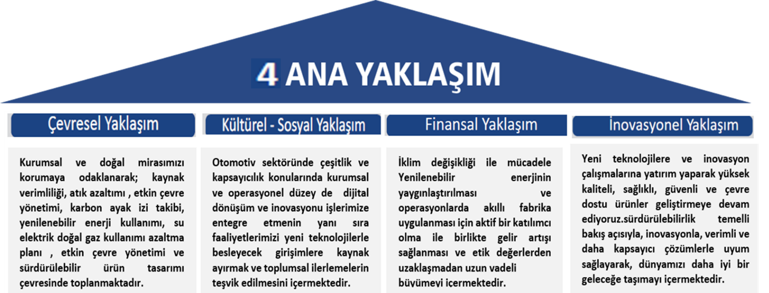 «Paydaşlarımızın bizimle çalışmayı seçtikleri şirket olmak» amacı ile ile iş yapma kültürümüzü çevresel, kültürel - sosyal fayda ve finans ekseninde oluşturarak faaliyetlerimizi sürdürülebilir bir gelecek odağında devam ettiriyoruz Sürdürülebilirlik stratejimiz, çevresel ve sosyal sorumluluklarımızı göz önünde bulundurarak uzun vadeli değer yaratmayı hedeflemektedir. Bu strateji, iş süreçlerimizin her aşamasında sürdürülebilirlik ilkelerini uygulamayı içermektedir.